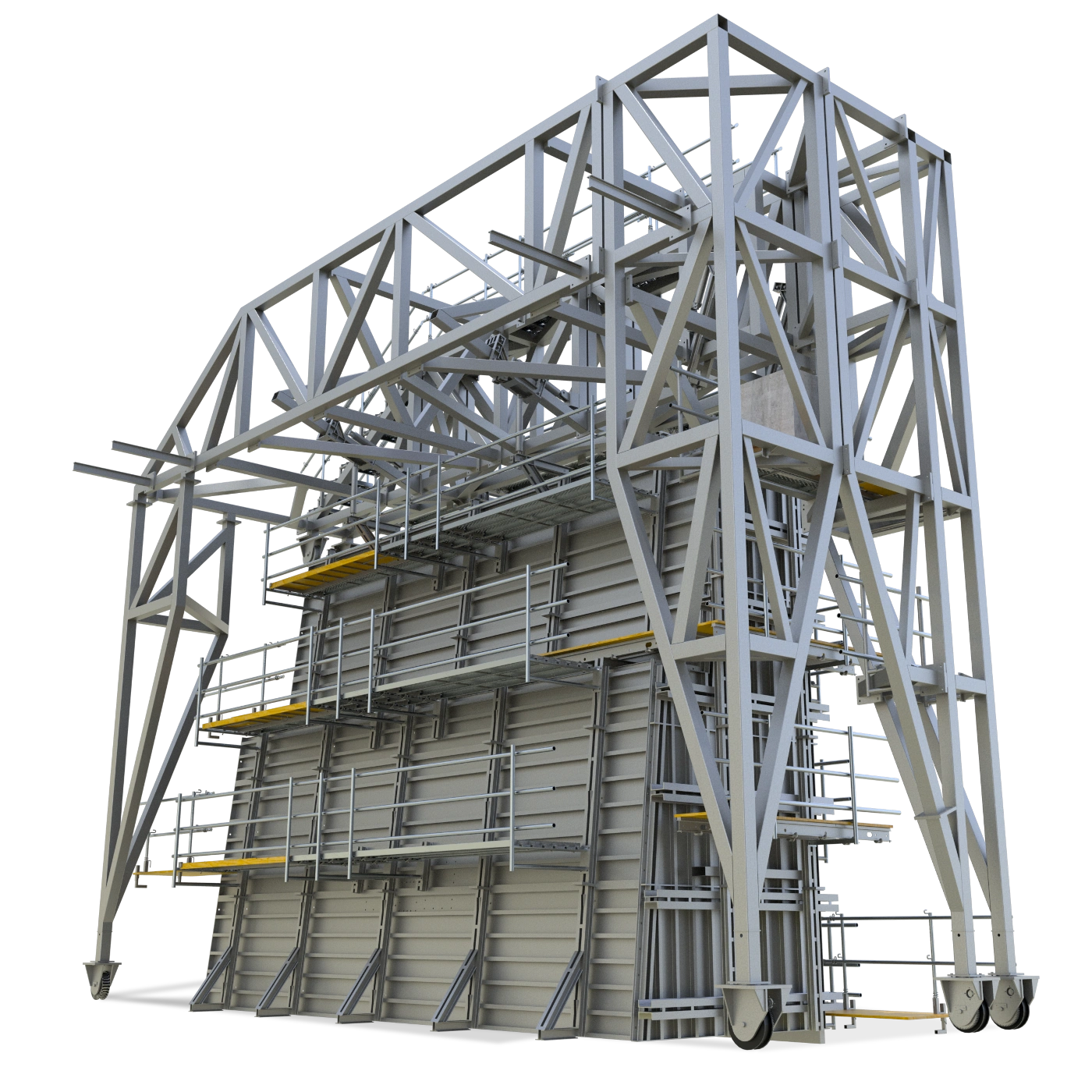 Sistemas auxiliares de encofrado trepantes para muros y elementos de hormigón de gran altura.