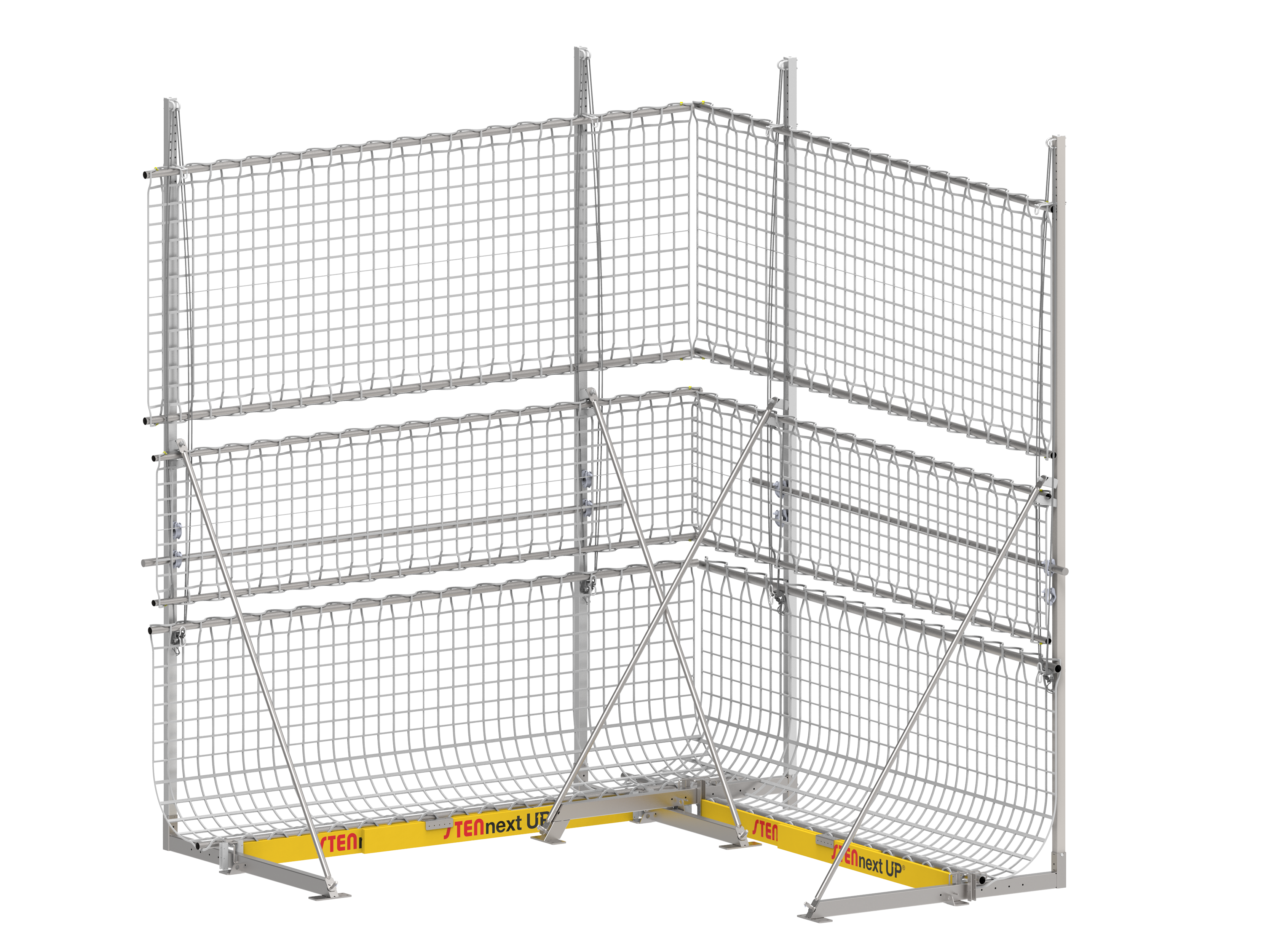 Sistema de redes de seguridad diseñado para adaptarse a cualquier planta, geometría o perímetro, gracias a su configuración modular e independiente.